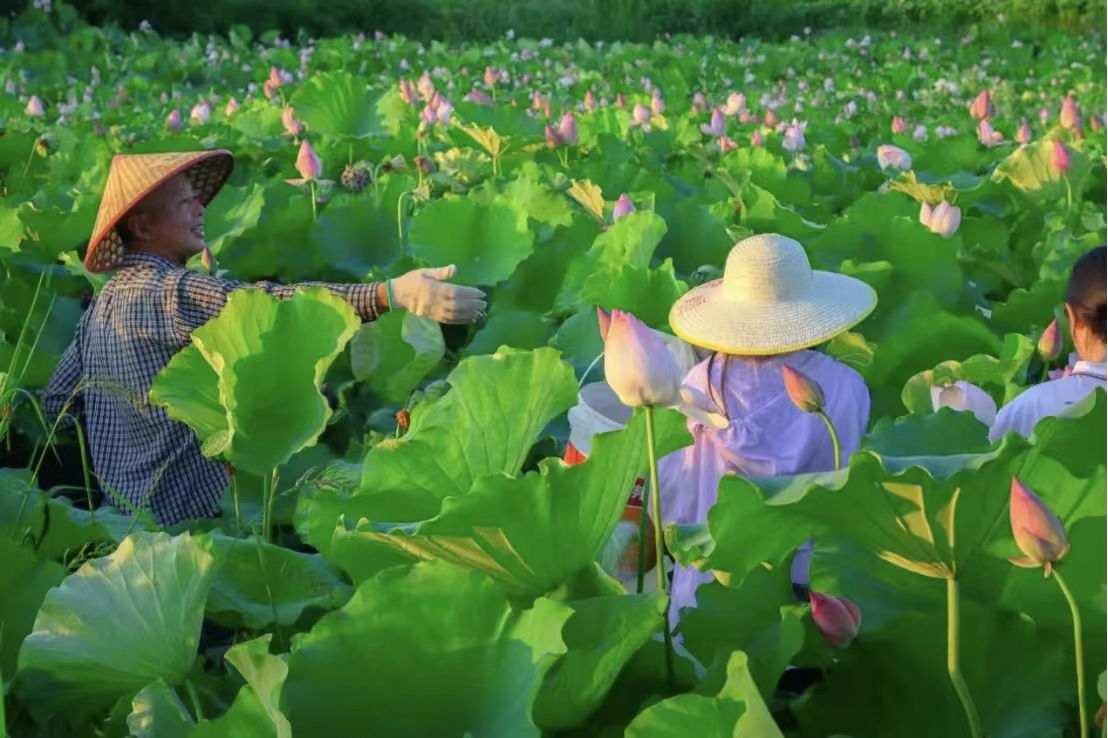 为深入了解双河村"稻虾共养""莲虾共养"等支柱产业发展情况,实践团深入田间地头,协助农户进行莲虾采收,并采访全国脱贫攻坚奋进奖获得者崔兴文,了解当地支柱产业的崛起历程与振兴经验。为进一步拓宽农产品销路,在与当地直播团交流后,实践团策划助农直播活动,以"预热活动+萌宠互动+知识科普"的创新模式,生动展现当地农产品的特色、食用方法以及背后的故事,让消费者更直观地感受到农产品的生态价值与人文内涵。实践团通过新媒体宣传的形式,为传统产业转型升级注入新动能。